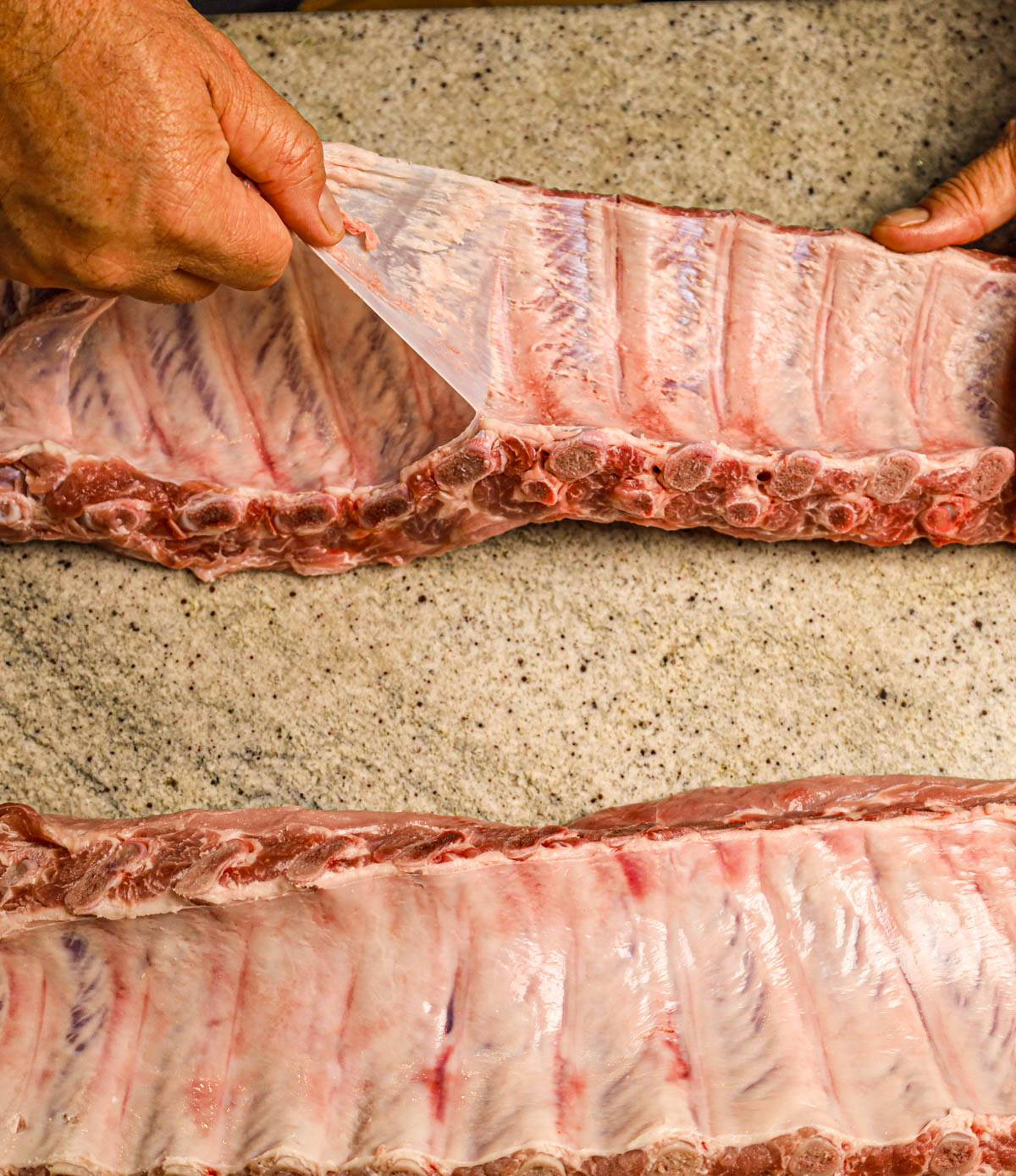 • Remove the membrane from the back of the ribs to ensure they’re more tender.