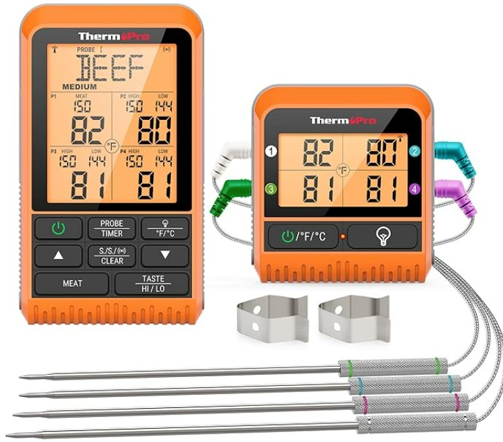 Grilling and Smoking, 4 Meat Probes Grill Thermometer for Outside Grill, BBQ